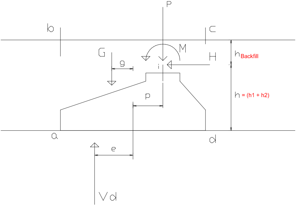 at foundation base γBackfill,d at ground level (γBackfill,d – γw) The Water Density γw is taken as 9,81 kN/m³