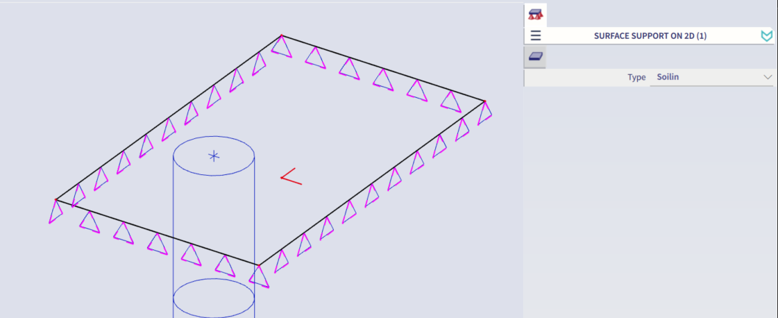 The interaction between the structure and subsoil is calculated if the structure is put on a support of "Soilin" type.