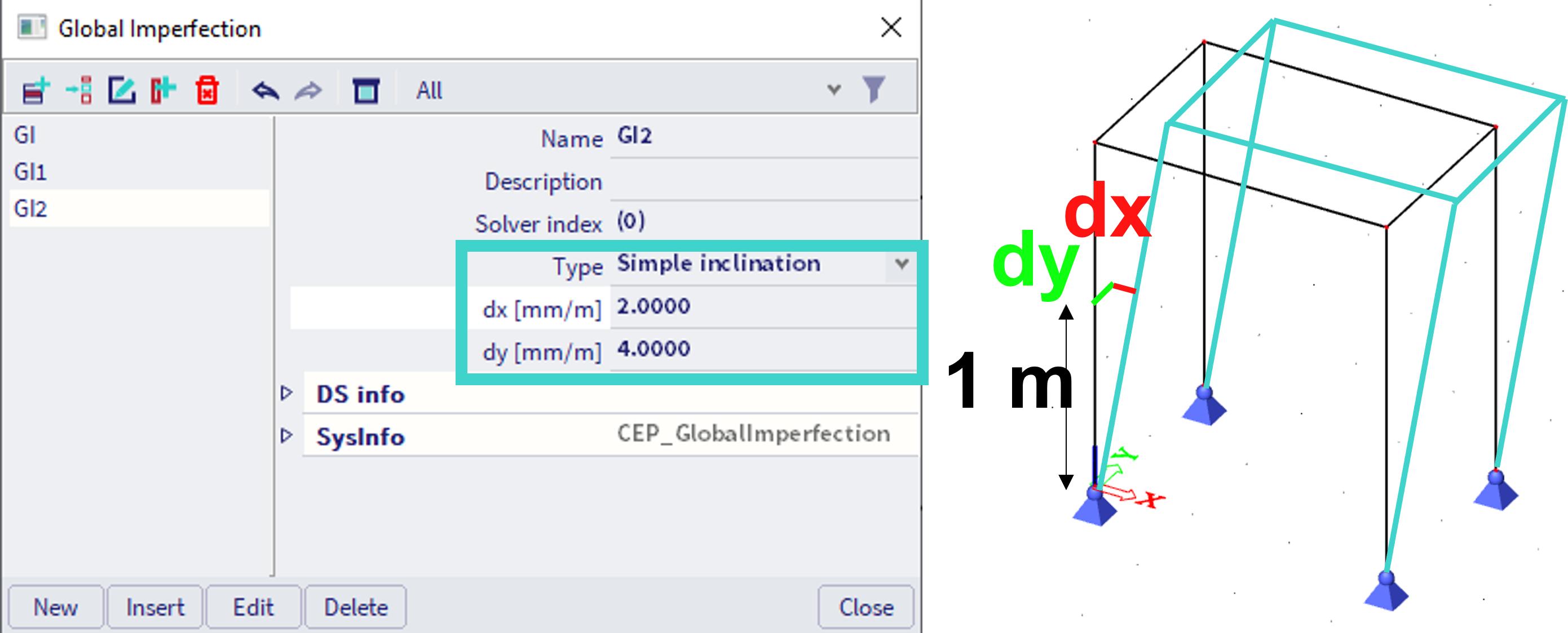 2) Input based on the corresponding Eurocode - in example above 1993-1-1 - in this case, sway (as a angle) is defined based on corresponding Eurocode (depends on selected material in the project)