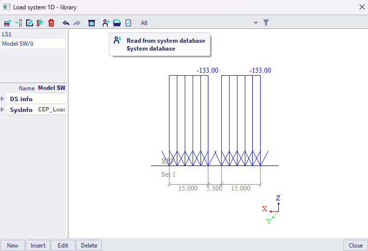 In the library of the load system 1D, user can select load system either from predefined database, or create a new unique load system.