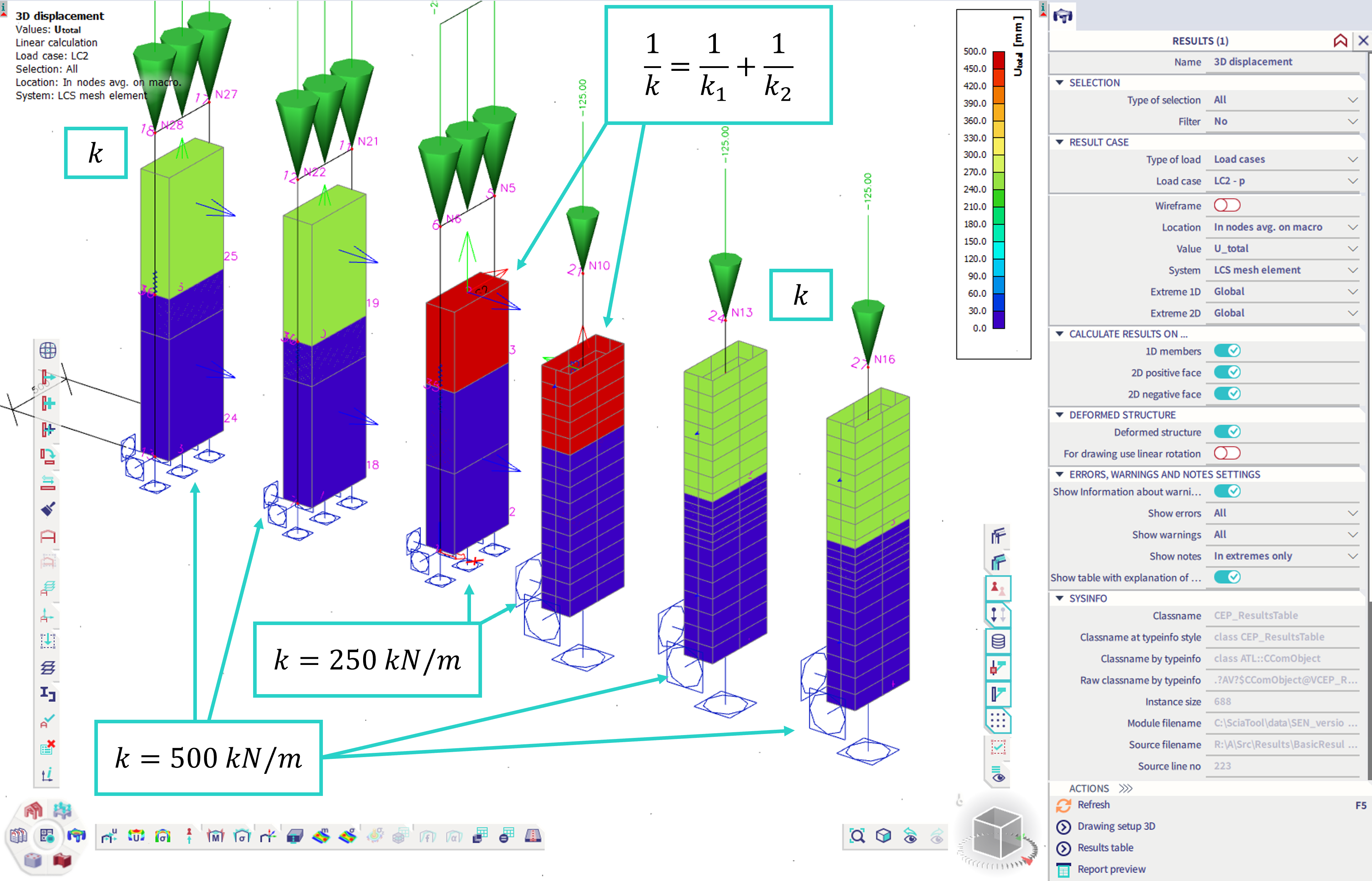 Also, user should be aware of the fact, that modelling 2 hinges in parallel, the resulting stiffness k is smaller then the stiffnesses of the single hinges (analogically for all the other possible hinge releases, like rotation etc.):