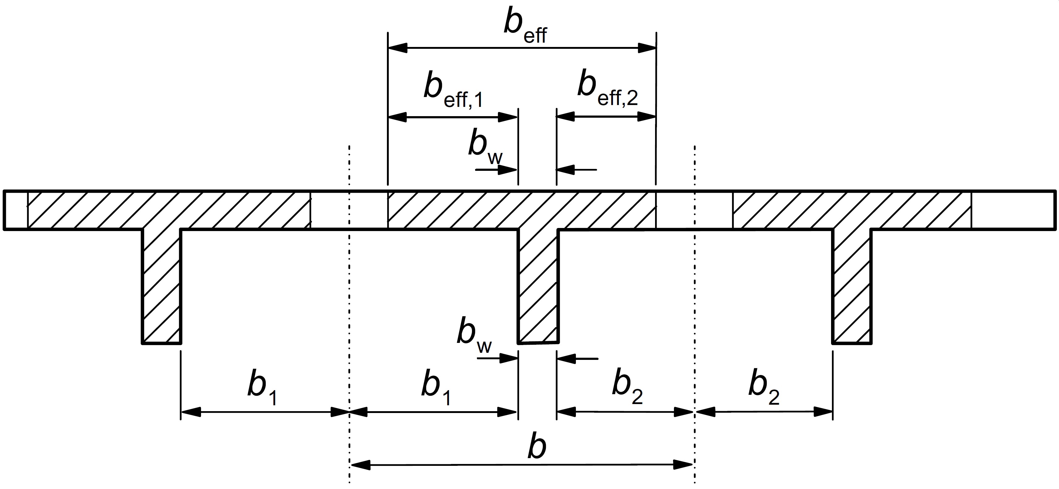 beff,left, beff,right are the left- and right-hand side effective width of the rib