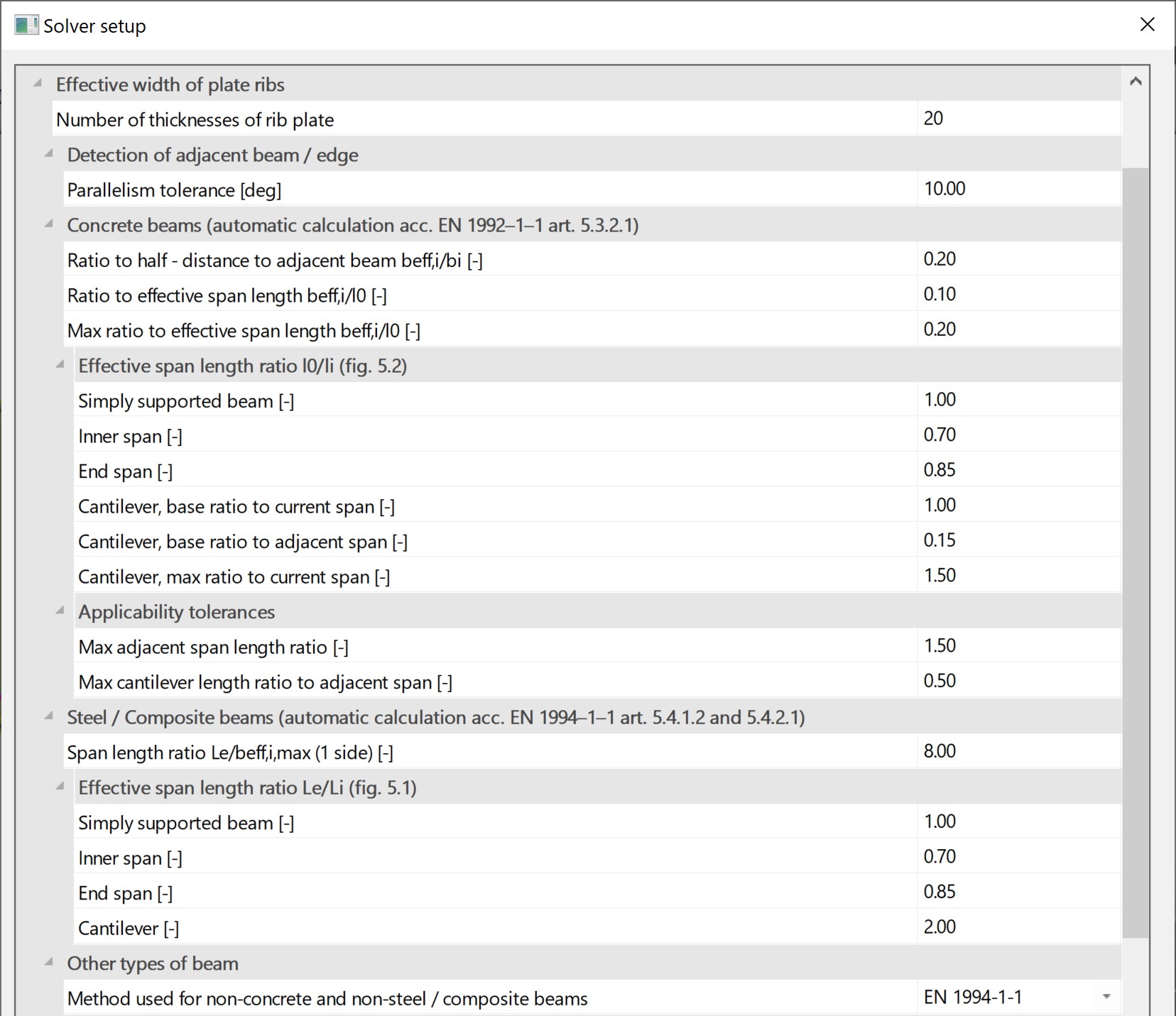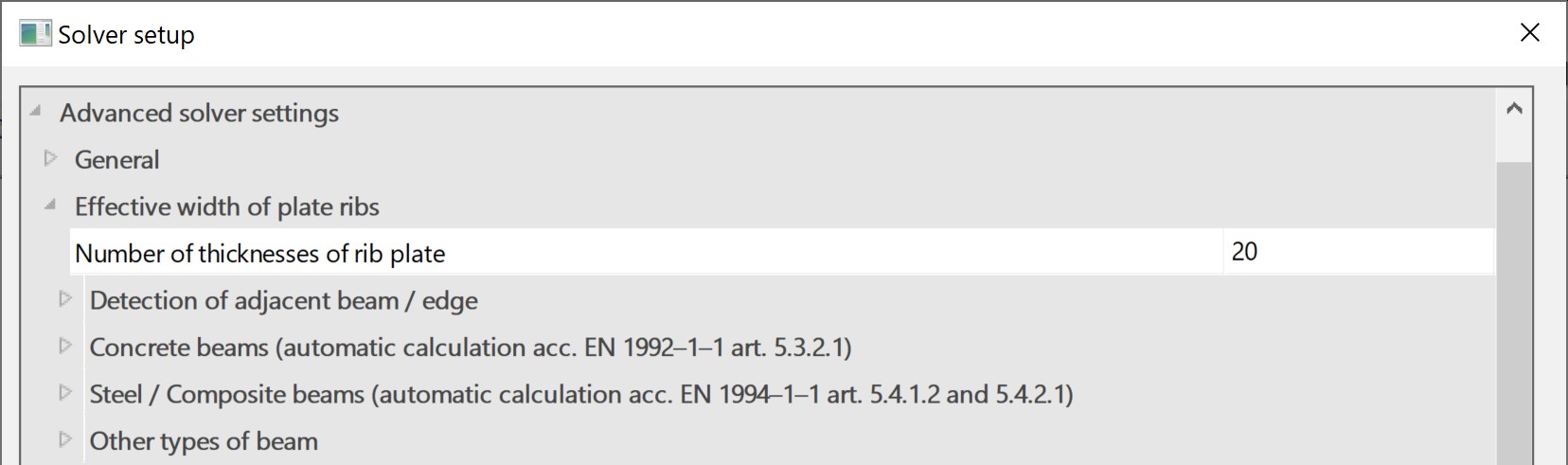 The following settings are a subset of the settings in the solver setup, that are used for automatic calculation of effective width of plate ribs.
