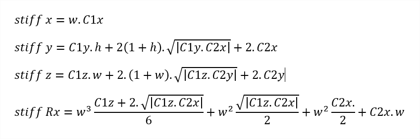 Stiffness parameters are calculated according these formulas :