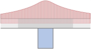 Specifies the alignment of the rib: Bottom The rib is attached to the bottom of the slab. The eccentricity is calculated automatically as the sum of the half of slab thickness and the distance from the bottom slab face to the centroid of the cross-section. Top The rib is attached to the top of the slab. The eccentricity is calculated automatically as the sum of the half of slab thickness and the distance from the top slab face to the centroid of the cross-section. Centre Middle axis of the rib and the slab are coincident. The final eccentricity is equal to zero. The calculation model shows a partial doubling of stiffness of the (i) slab and (ii) the rib. |