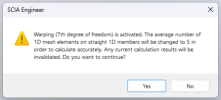 In order to make this functionality to work properly, finer mesh needs to be used for 1D elements. E.g. not 1 finite element per member, but 5 are quite sufficient. Therefore, if the "average number of 1D mesh elements" within the "mesh settings" is not set accordingly, a warning is issued informing about this after the analysis initiation, and this property is set to 5. In case finer mesh is used for 1D members, results will be more precise (e.g. up to 20, finer might result in slowing down the analysis, not improving precision significantly).