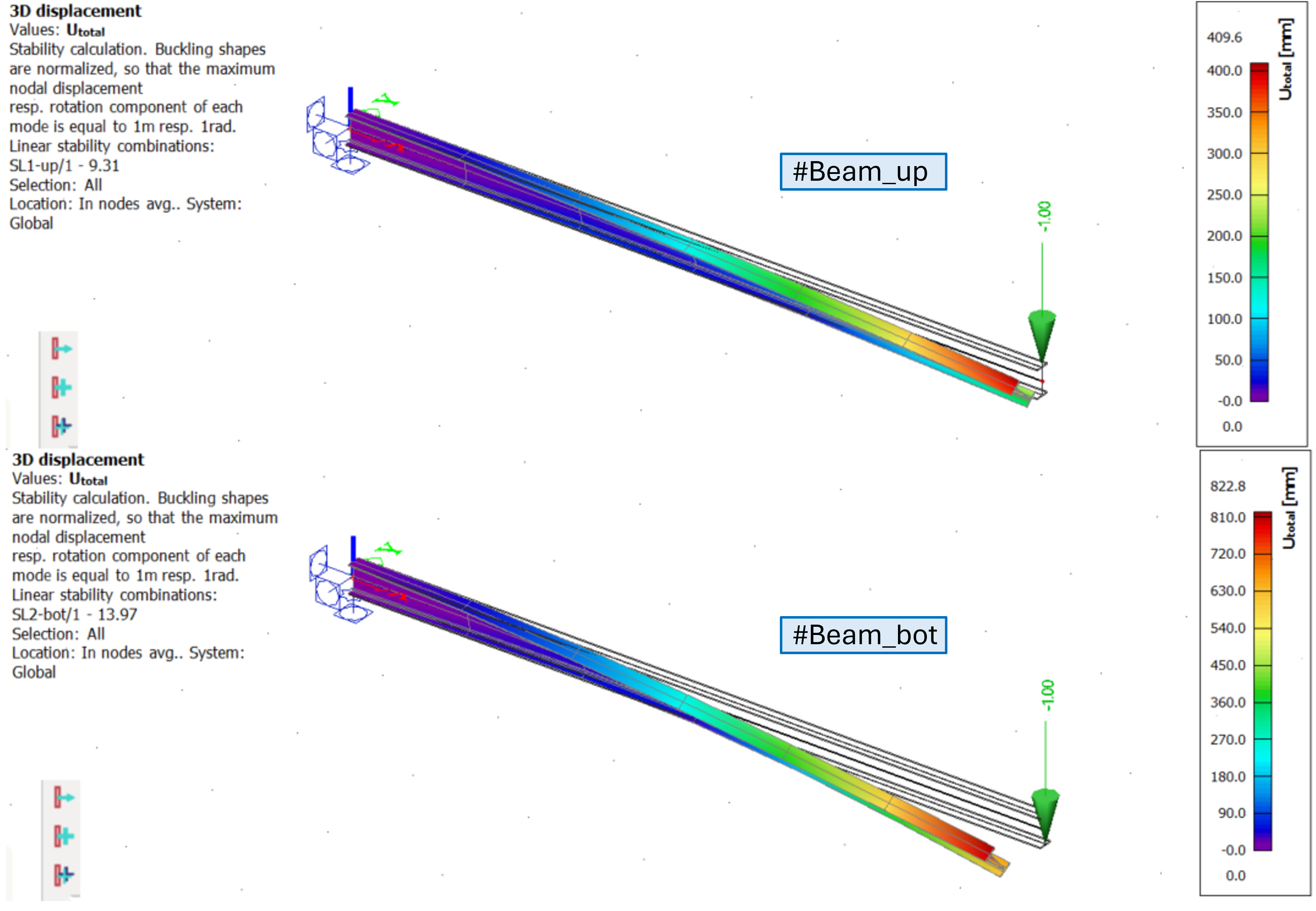 It can be observed the critical coefficient in #Beam_up is smaller then in #Beam_bot, what is achieved only if 7th DoF is considered.