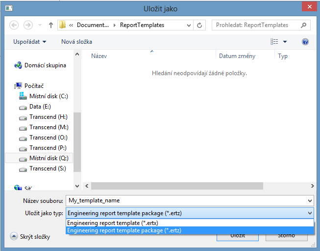 When selecting report file name it is possible to select one of two available formats of report template file. The default format is zipped package which produce significantly smaller file.