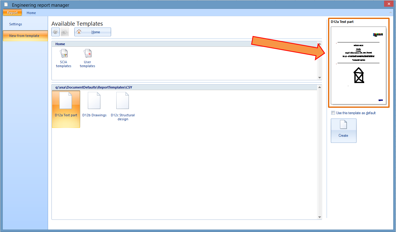 In the list there are displayed both (user defined and SCIA defined ) types of templates.