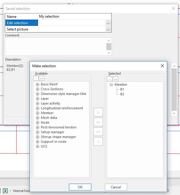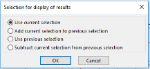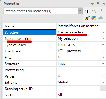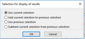 If named selection is created in project (group of entities is defined in special dialog) it is possible to choose it for selection and displaying results |