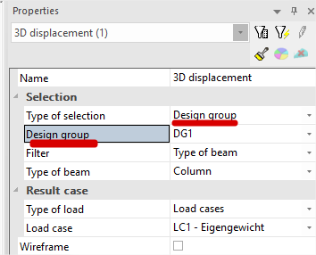 If Design group is created in project it is possible to choose it for selection and displaying results |