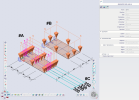 The generated loads from these free loads are depicted in the figure below. On structure #A, there are 4 strips of 300, 200, 250 and 250 mm (#C).