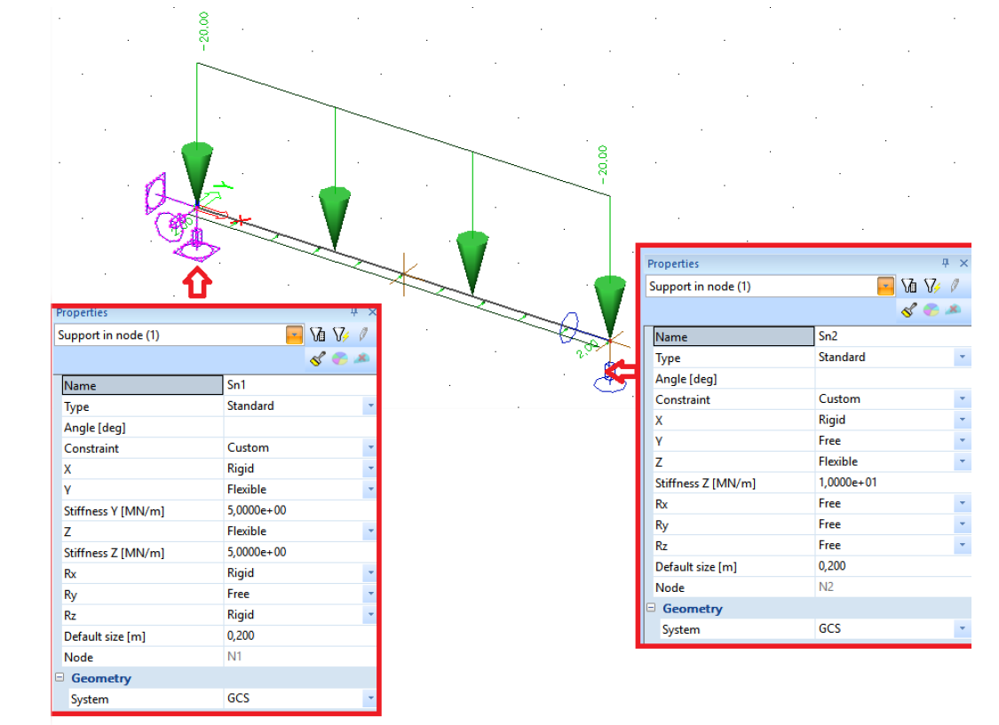 known. In node N1 -> uz = -12,0mm and in node N2 -> uz = -6,0mm.