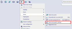 The Advanced Graphic Setup dialogue can be accessed via de Main Menu (View > Views > Advanced graphic settings) or by searching for the command via de SCIA Spotlight.