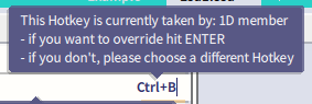 When a hotkey is already defined to another command, a message is given to the user to warn him that the other command will lose the hotkey.