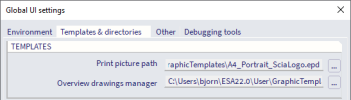 This tab enables the user to define templates which new drawings will be based on. This option may be useful for example if a title block with the company logo should be attached to every drawing.