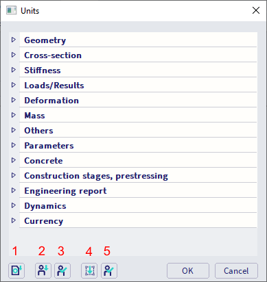 In SCIA Engineer the user uses can setup "unit set" which will be used for project.